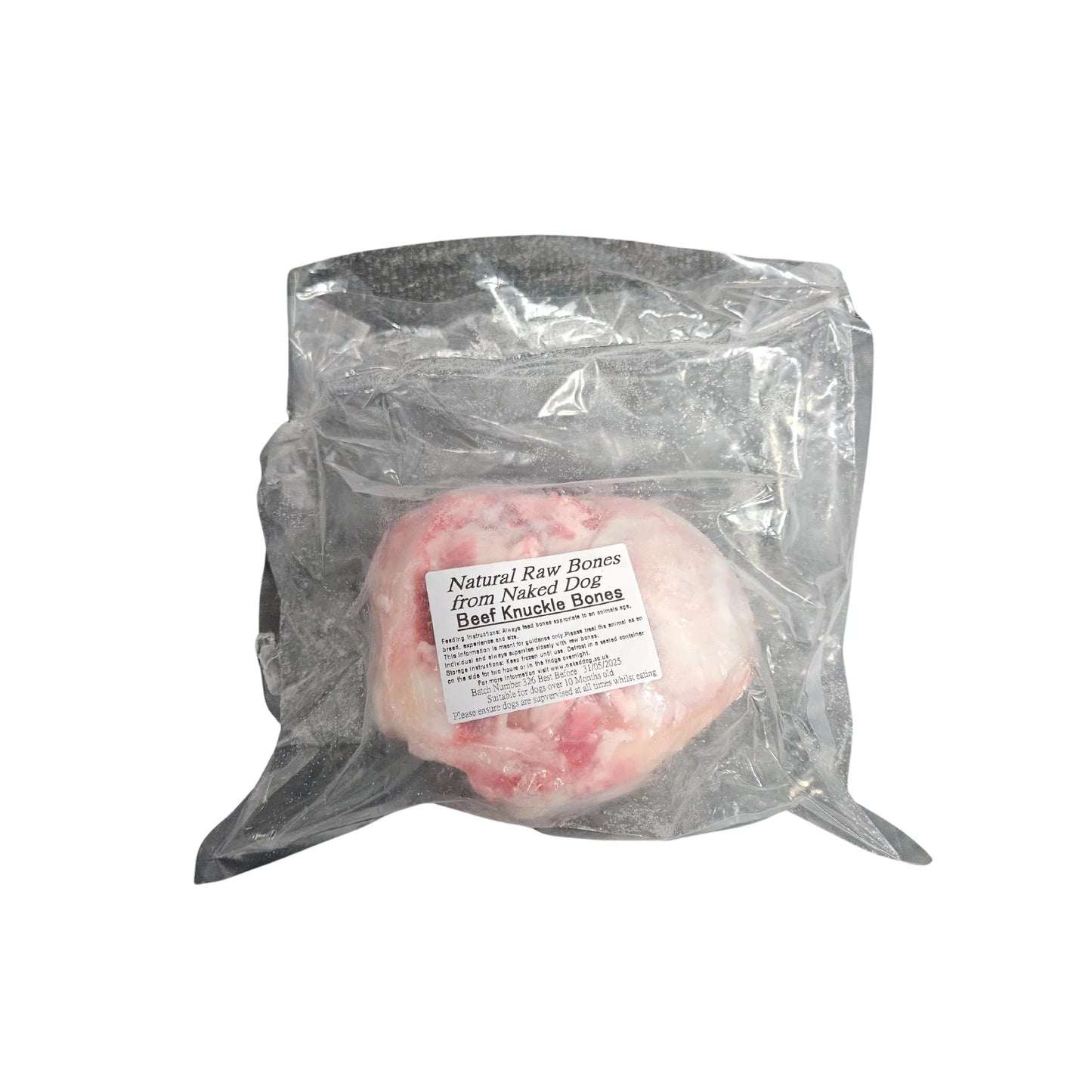 Beef large knuckle bones. These are suitable for dogs of all sizes. Great for keeping any adult dog entertained for hours! The knuckles are great for gnawing and the marrow in the bone shaft is a delicious treat that every dog can access. Please ensure you select the right size bone for your dog. Brand may vary.