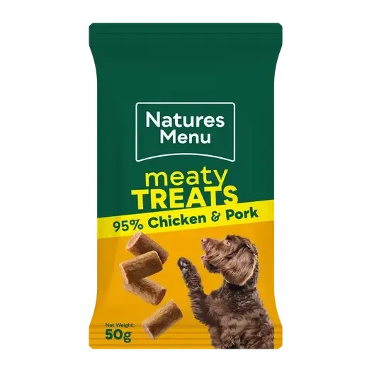 Natures Menu classic real meaty treats are a delicious, natural dog treat made with 95% real meat, perfect for reward-based training.